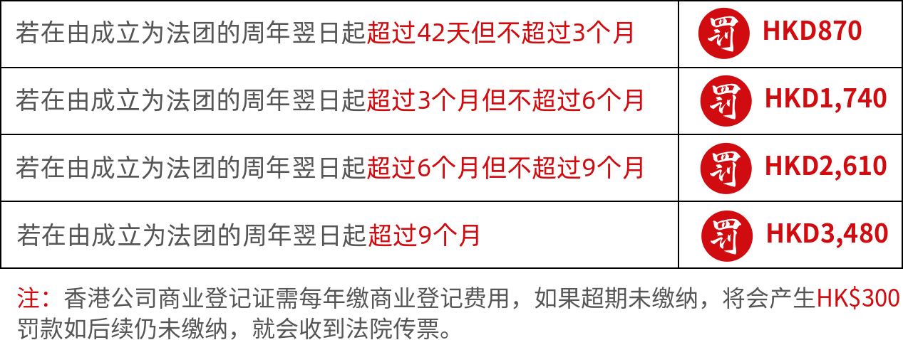 政府將會罰款或起訴,并發(fā)出法院傳票,逾期最高罰款HKD50000,每日罰款可達(dá)HKD700